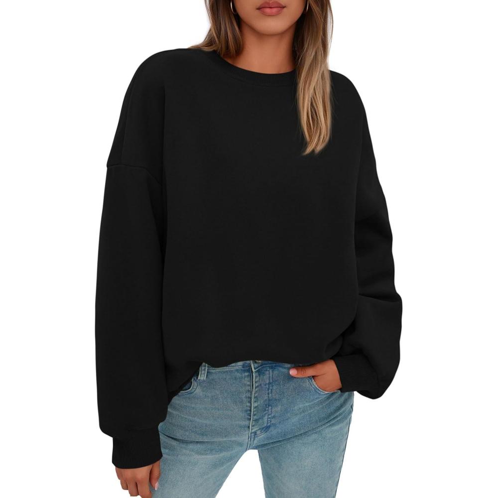PRETTYGARDEN Sweatshirt for Women Oversized Crewneck Long Sleeve Pullover Fleece Top 2025 Fall Winter Fashion Outfits Clothes(Black)