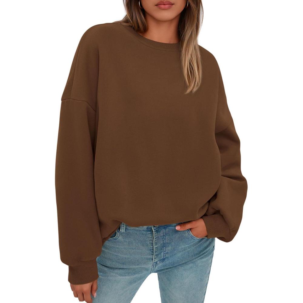 PRETTYGARDEN Sweatshirt for Women Oversized Crewneck Long Sleeve Pullover Fleece Top 2025 Fall Winter Fashion Outfits Clothes(Brown)