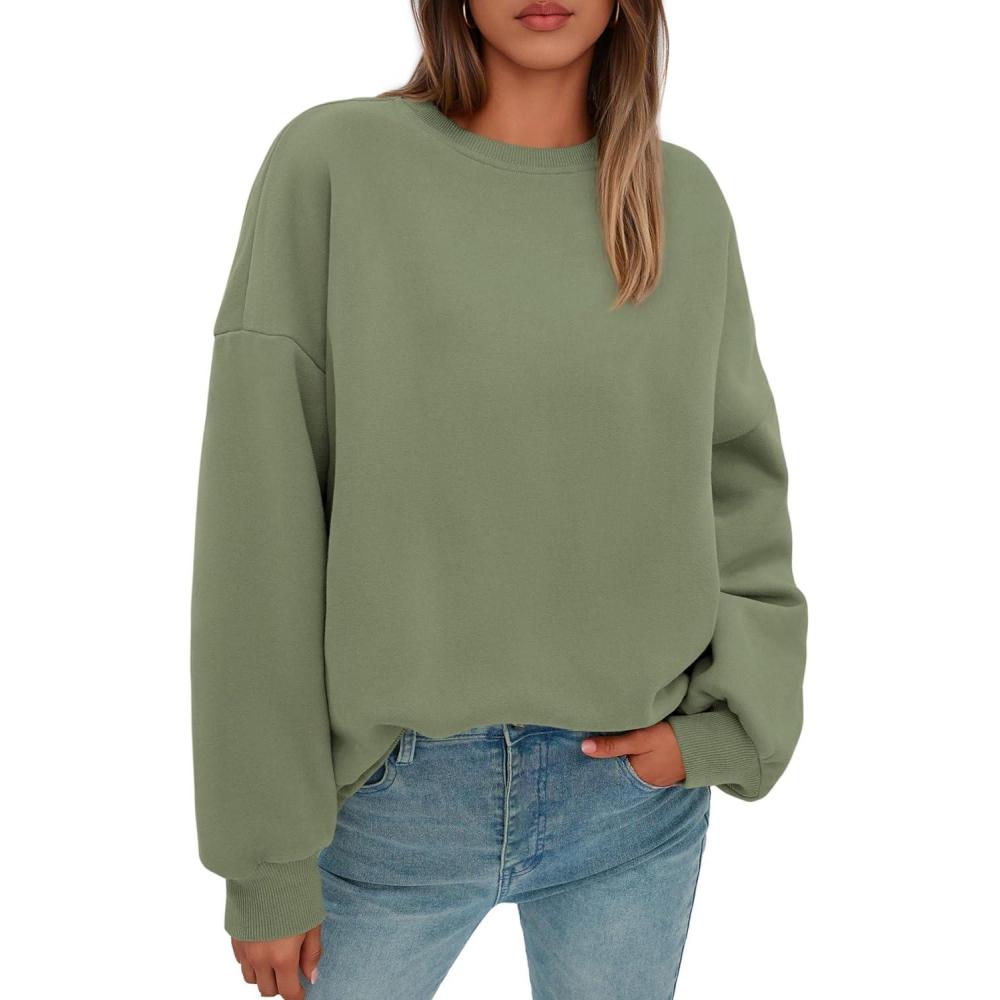 PRETTYGARDEN Sweatshirt for Women Oversized Crewneck Long Sleeve Pullover Fleece Top 2025 Fall Winter Fashion Outfits Clothes(Army Green)