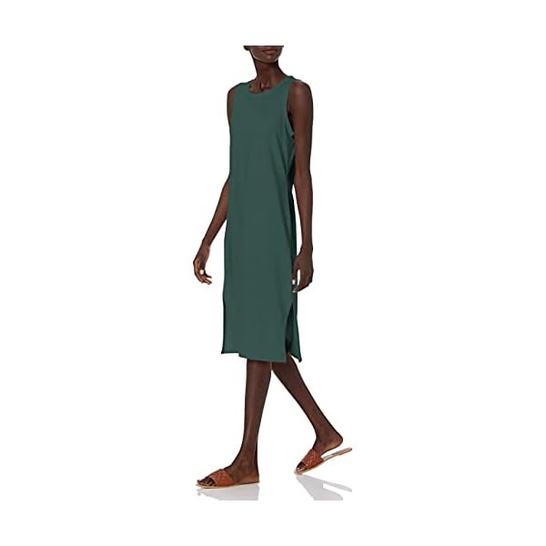 Amazon Essentials Women’s Lived-in Cotton Relaxed-Fit Muscle-Sleeve Midi Dress (Previously Daily Ritual), Green, Small