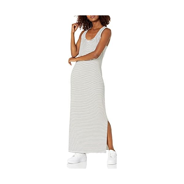 Amazon Essentials Women’s Supersoft Terry Racerback Maxi Dress (Previously Daily Ritual), White/Black, Stripe, Large