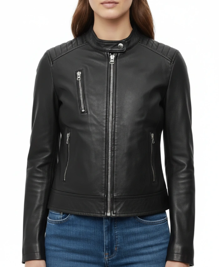 Women’s Asymmetrical Black Leather Quilted Jacket