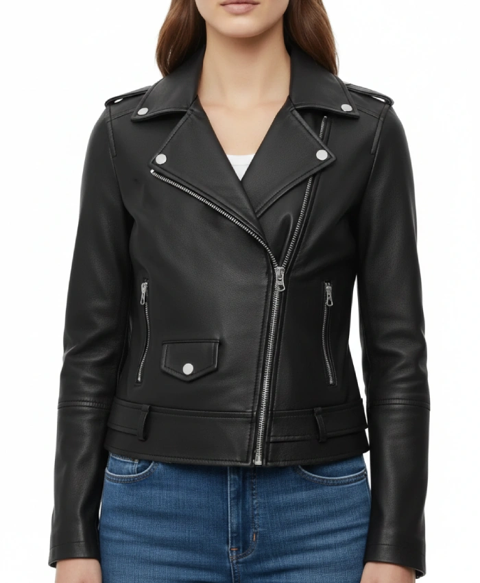 Women’s Black Asymmetrical Genuine Biker Leather Jacket