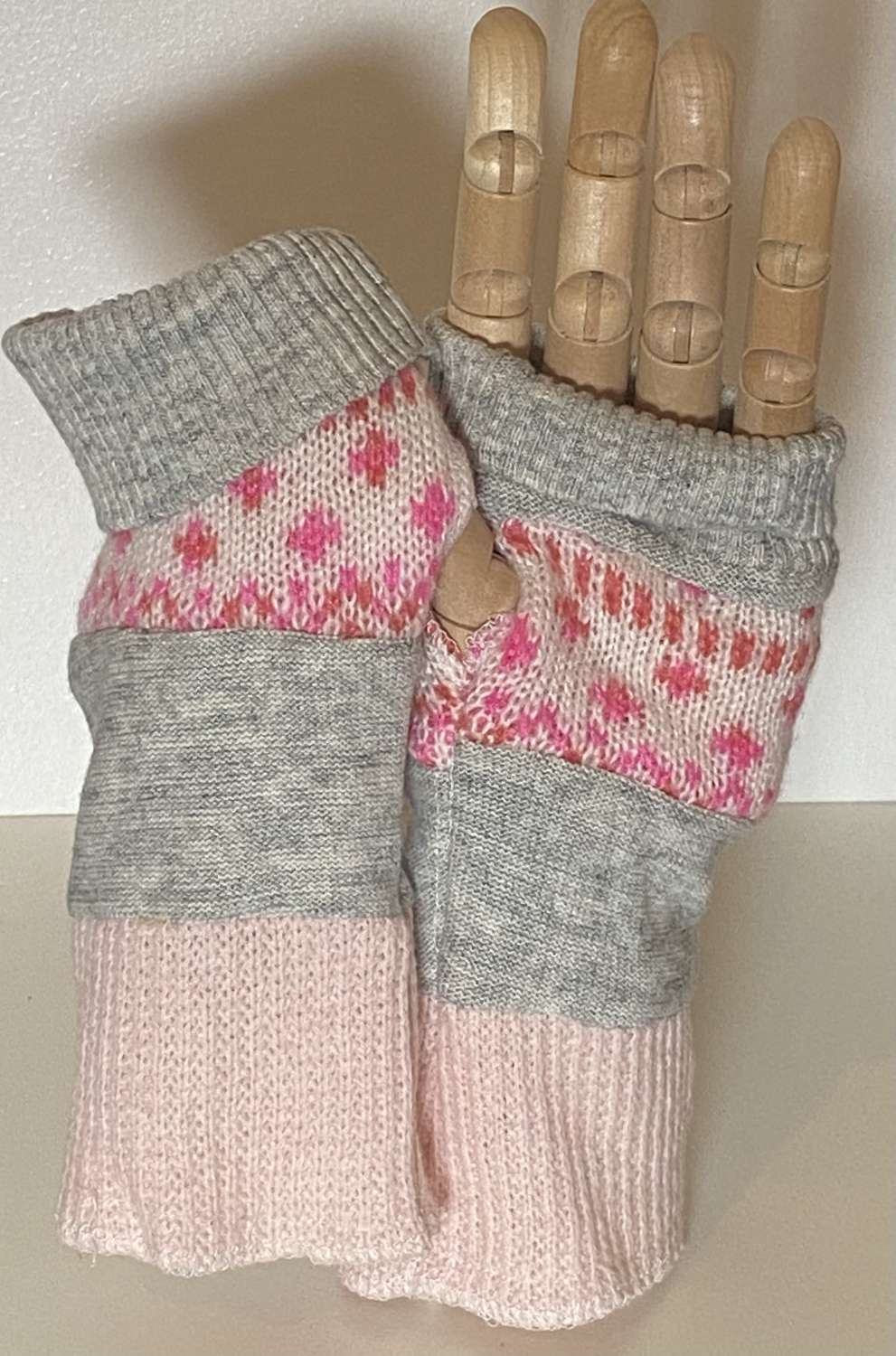 Pink & Grey Fingerless Gl…