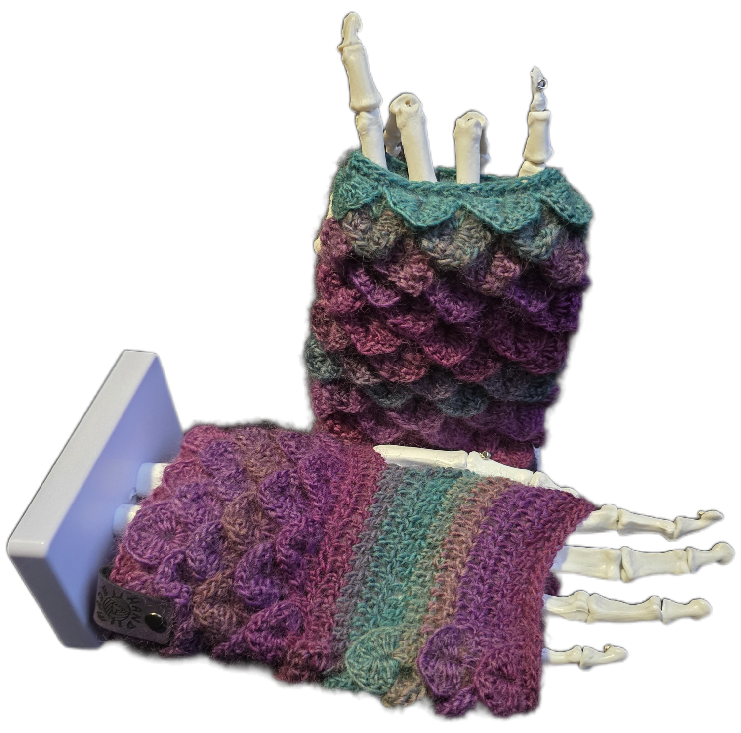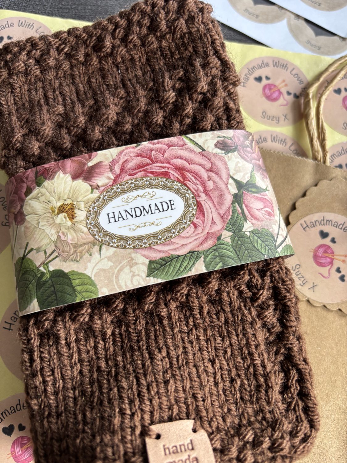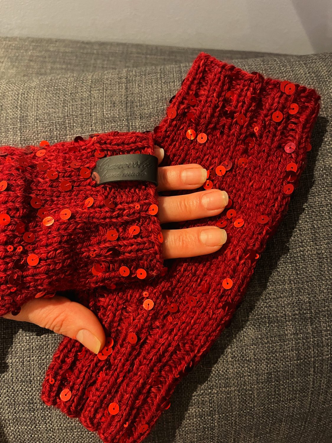 Hand knitted hand warmers