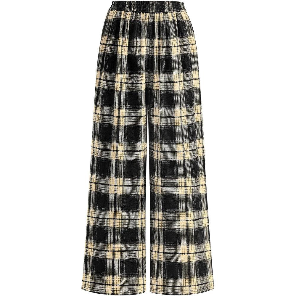 PRETTYGARDEN Casual Women’s Pants 2025 Elastic Waist Palazzo Long Pajama Wide Leg Trousers Knit Fall Outfits with Pockets(Plaid Black Apricot)
