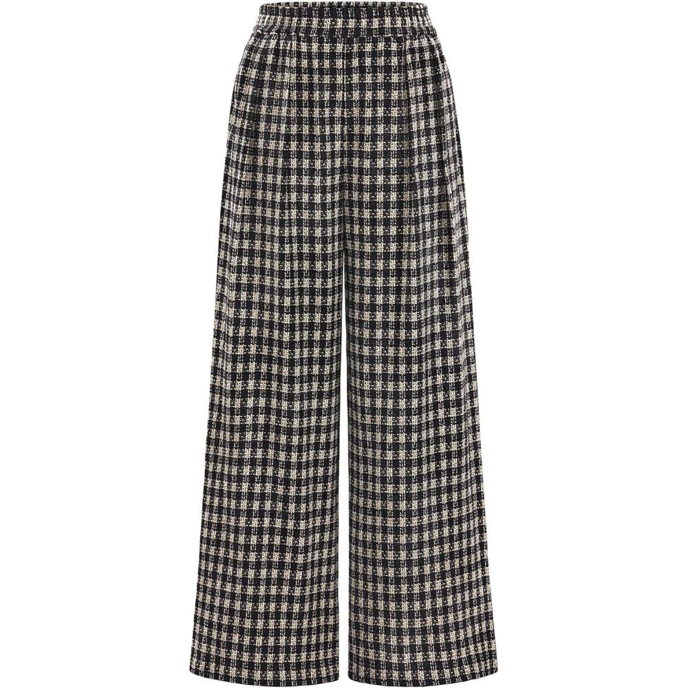 PRETTYGARDEN Casual Women’s Pants 2025 Elastic Waist Palazzo Long Pajama Wide Leg Trousers Knit Fall Outfits with Pockets(Small Plaid Black)