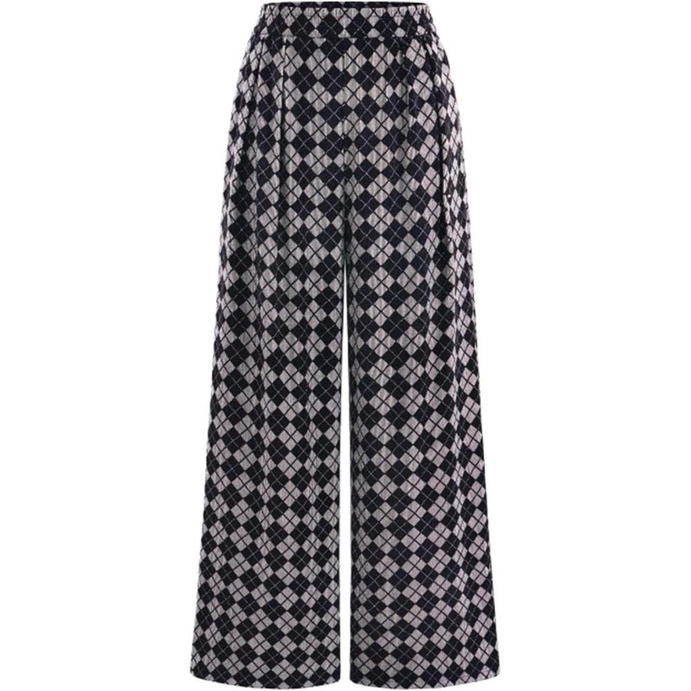 PRETTYGARDEN Casual Women’s Pants 2025 Elastic Waist Palazzo Long Pajama Wide Leg Trousers Knit Fall Outfits with Pockets(Plaid Navy)