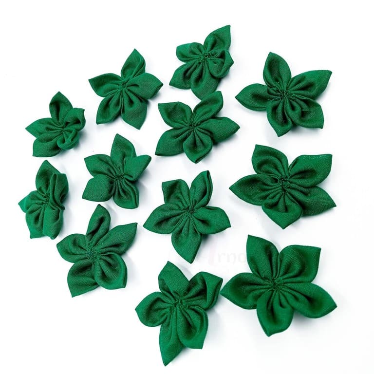 COTTONFLOWER09- ARNAS HANDMADE DARK GREEN COTTON FABRIC FLOWER FOR CRAFT AND JEWELLERY MAKING – 10 PCS PACK